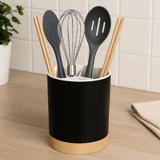Le pot à ustensiles de cuisine est l’allié pratique pour garder vos spatules, fouets, louches ou cuillères en bois toujours à portée de main. Plus besoin de fouiller dans les tiroirs pendant la préparation de vos plats !