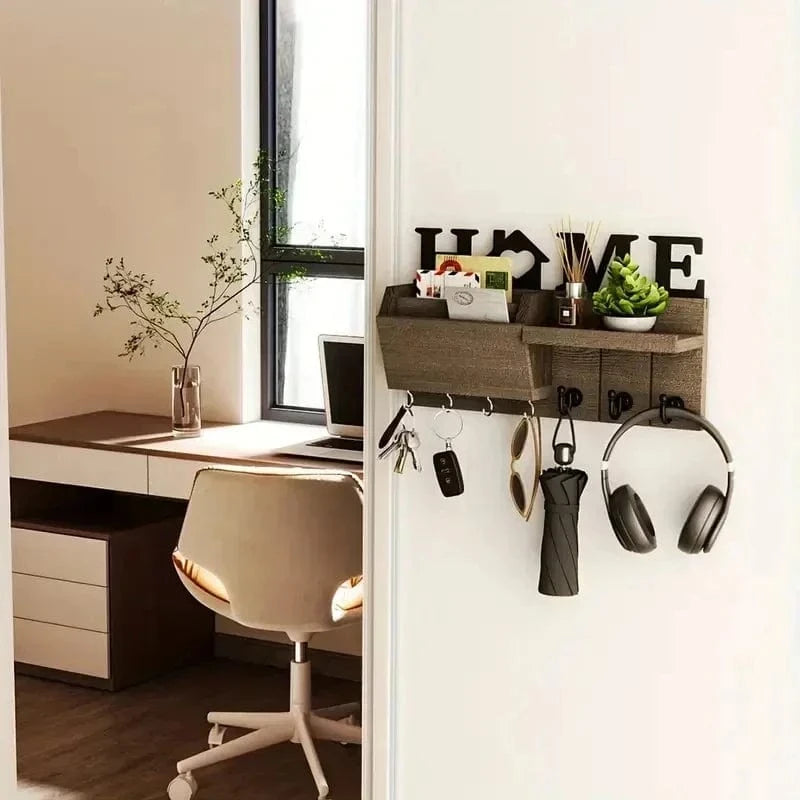 Optimisez votre organisation avec ce porte-courrier en bois multifonction, parfait pour ranger vos lettres, factures et documents tout en servant de support pour clés, casque audio et autres accessoires. Son design élégant et naturel s’intègre parfaitement dans une entrée, un bureau ou une cuisine, offrant un gain de place optimal et un accès rapide à vos essentiels du quotidien.