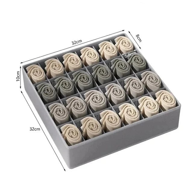 Rangement Chaussettes en Tissu – Bac avec 24 Compartiments Individuels