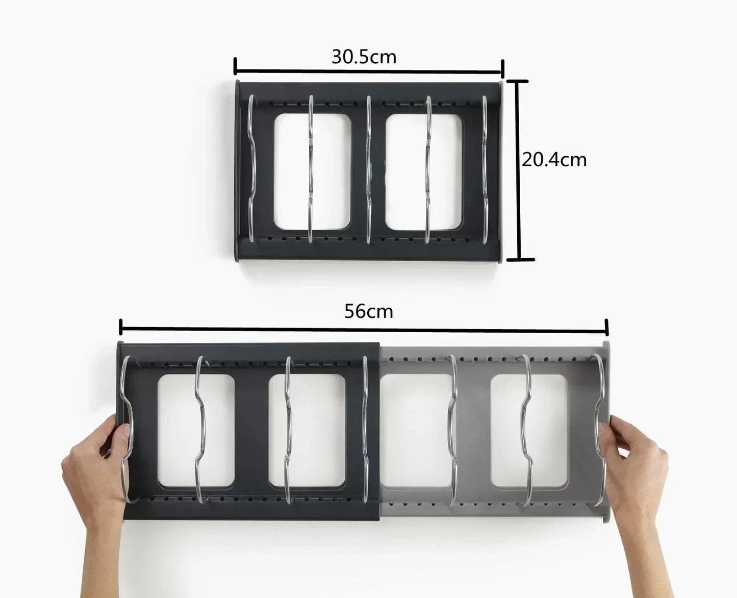 Ce rangement de couvercle pour cuisine vous permet de structurer vos placards avec précision. Grâce à ses 7 séparateurs, il accueille facilement couvercles, poêles, plaques ou planches à découper. Son format extensible, de 30 à 56 cm, s’adapte à l’espace disponible dans vos tiroirs ou armoires. Stable, modulable et sans fixation, il est parfait pour garder vos ustensiles bien rangés et toujours accessibles. Un accessoire indispensable pour gagner en clarté et en confort dans votre cuisine.